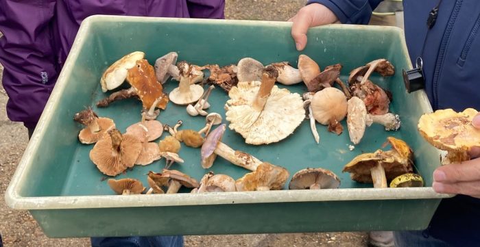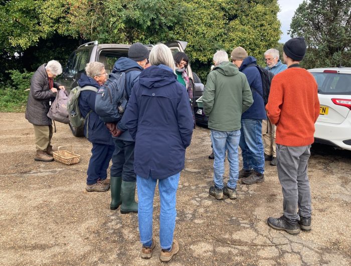 The group gathered on Sunday morning at the farmhouse and began with looking at a selection of fungi specimens from a recent visit to a different chalk soil site.