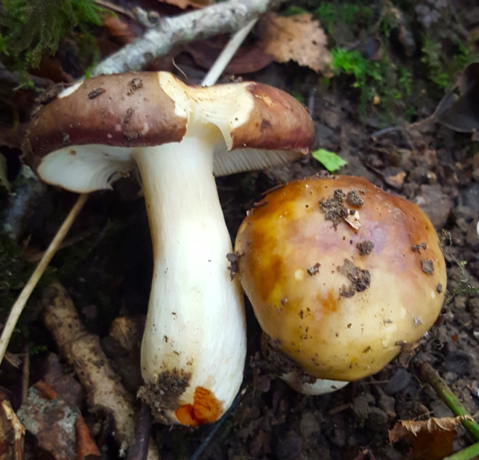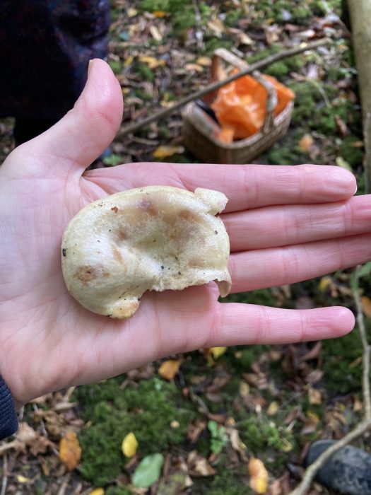 The group then set off down the public bridleway and headed into Little Spelty. Here we found a lot of chalk-based species including Hellrandiger Schneckling (Hydrophorus lindtneri) and Viscid Brittlegill (Russula viscida), two quite rare species. It was interesting how the experts used nearby trees to help identify down to species level, as fungi form symbiotic relationships with a particular tree species. We also learnt the role of fungi in nutrient cycling, breaking down organic matter and woodland health.